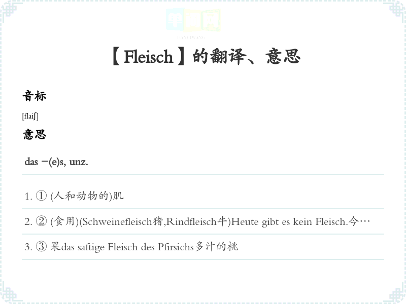 ③ 果das saftige Fleisch des Pfirsichs多汁的桃