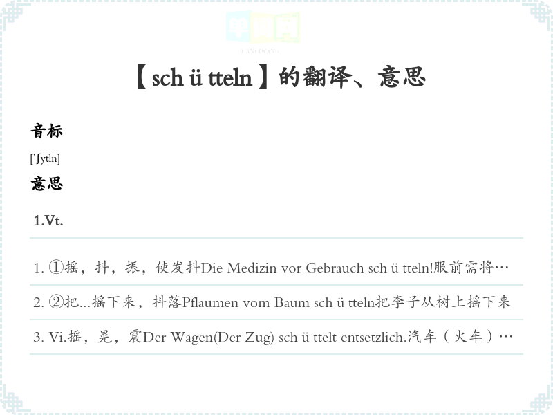 【schütteln】是什么意思、字义解释