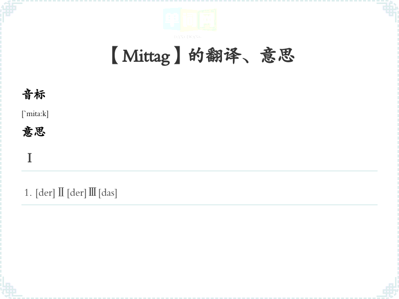 【Mittag】是什么意思、字义解释