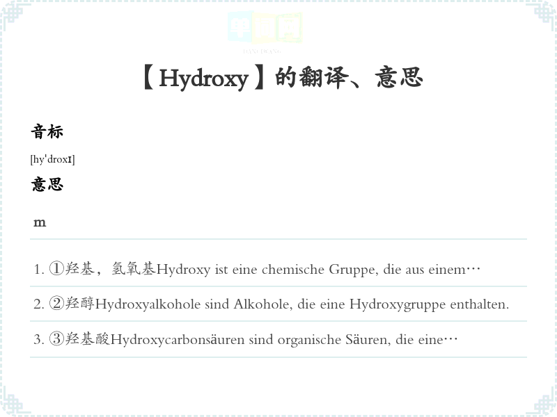 ①羟基,氢氧基Hydroxy ist eine chemische Gruppe, die aus einem Sauerstoff- und einem Wasserstoffatom besteht.