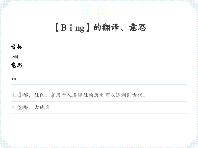 - 1. 在古代,邴姓是一个重要的姓氏。