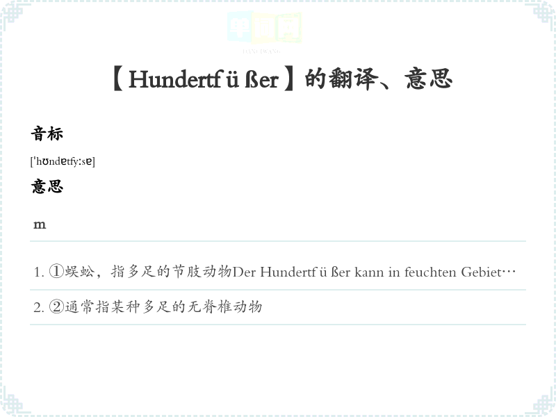 【Hundertfüßer】是什么意思、字义解释