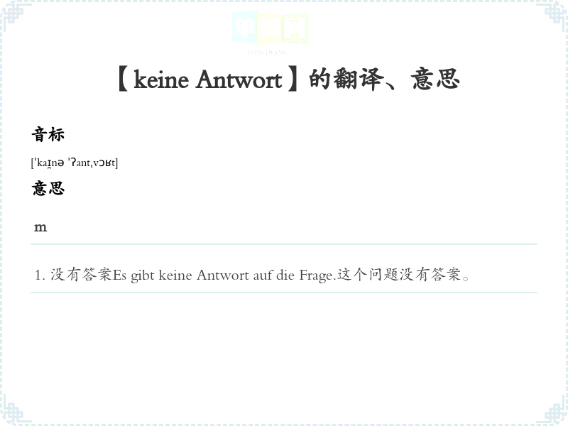 没有答案Es gibt keine Antwort auf die Frage.这个问题没有答案。