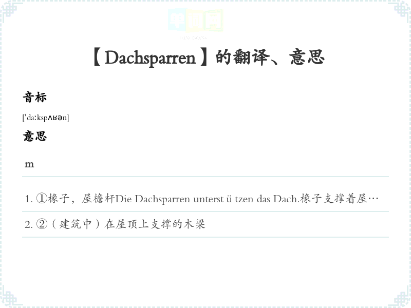 【Dachsparren】是什么意思、字义解释