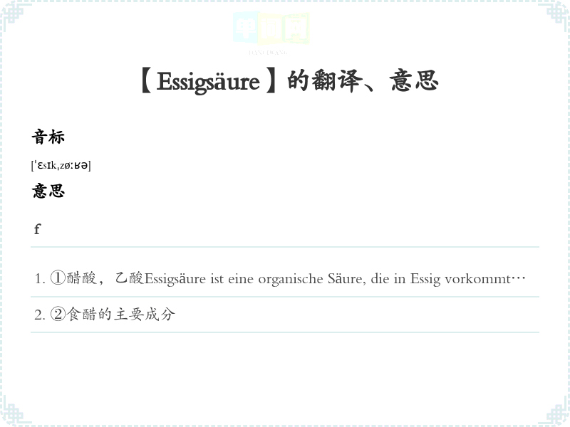 【Essigsäure】是什么意思、字义解释