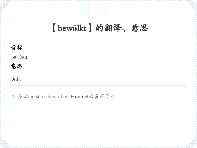 【bewölkt】是什么意思、字义解释