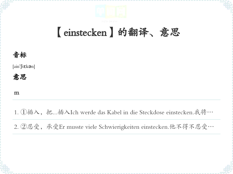 【einstecken】是什么意思、字义解释