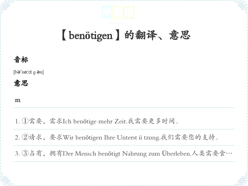 【benötigen】是什么意思、字义解释