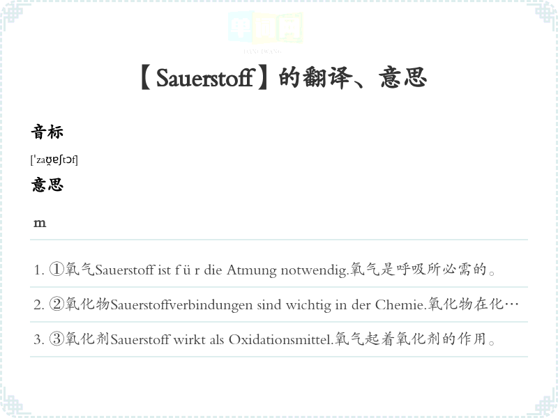 【Sauerstoff】是什么意思、字义解释