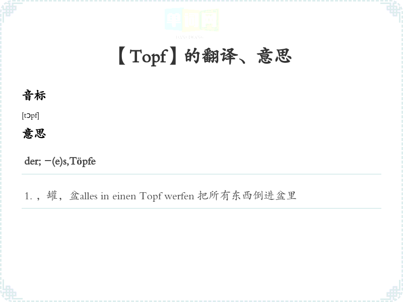 ,罐,盆alles in einen Topf werfen 把所有东西倒进盆里
