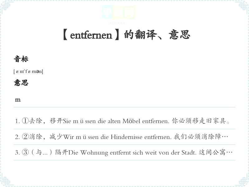 【entfernen】是什么意思、字义解释