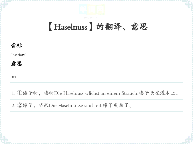 【Haselnuss】是什么意思、字义解释