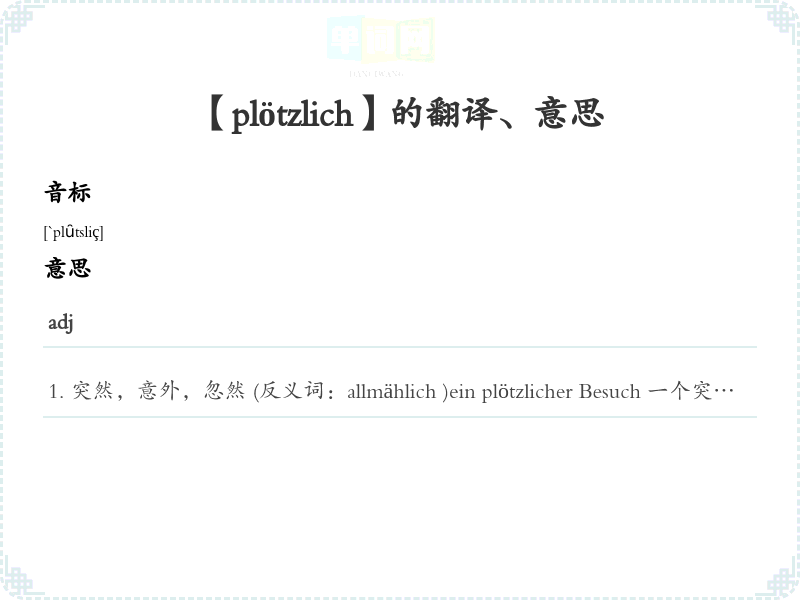 【plötzlich】是什么意思、字义解释