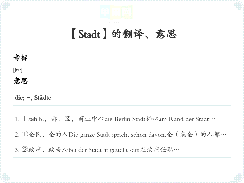 【Stadt】是什么意思、字义解释