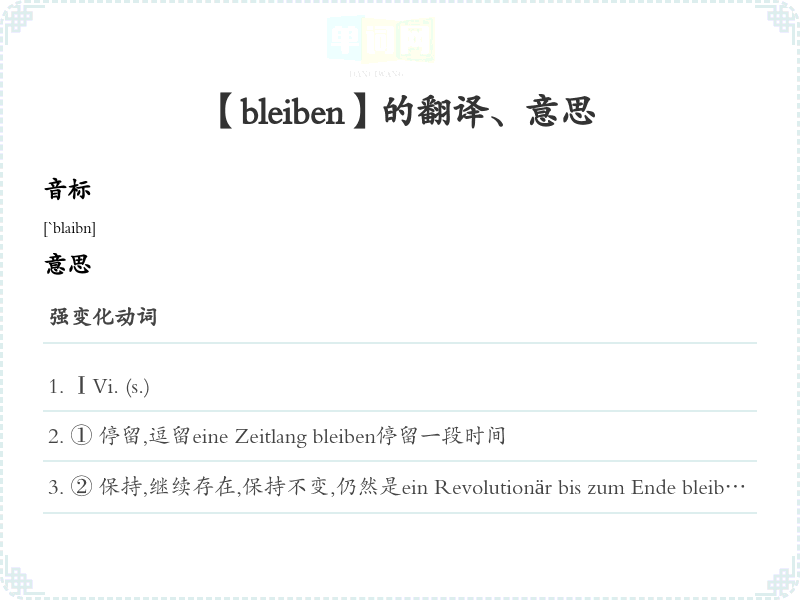 【bleiben】是什么意思、字义解释