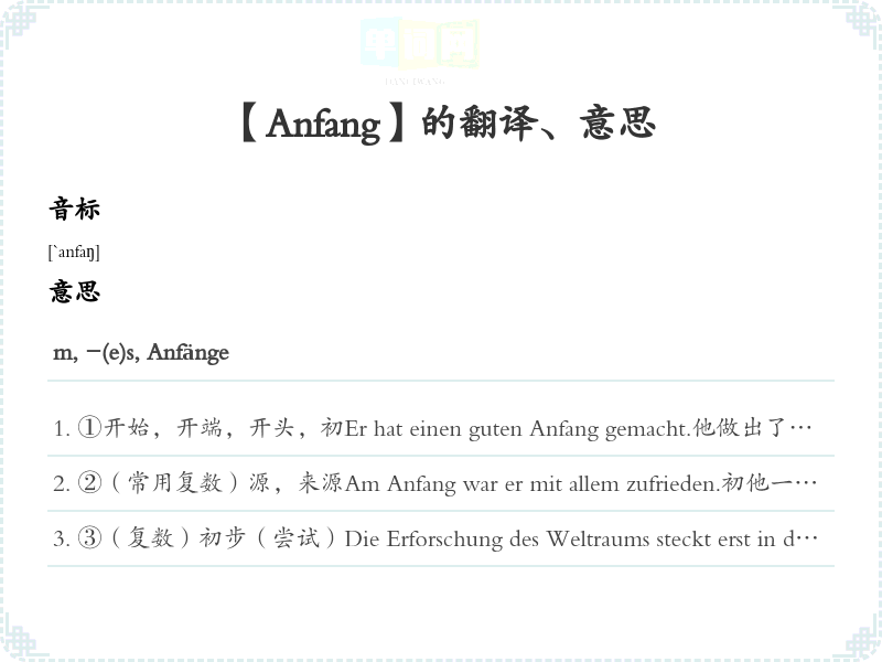 【Anfang】是什么意思、字义解释