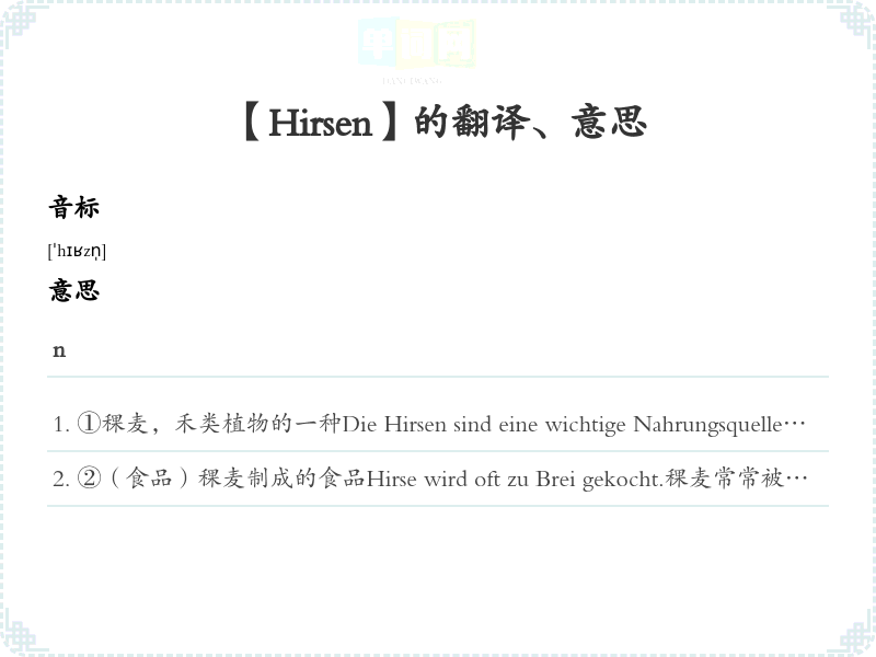 【Hirsen】是什么意思、字义解释