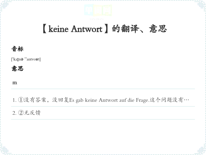 ①没有答案,没回复Es gab keine Antwort auf die Frage.这个问题没有答案。