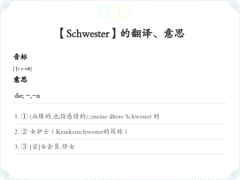 2.Schwägerin大姑子,小姑子,大姨子,小姨子,嫂子,弟媳,弟,妯娌
