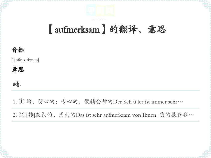 【aufmerksam】是什么意思、字义解释