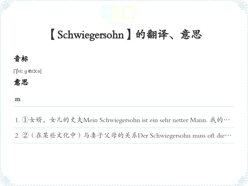 【Schwiegersohn】是什么意思、字义解释