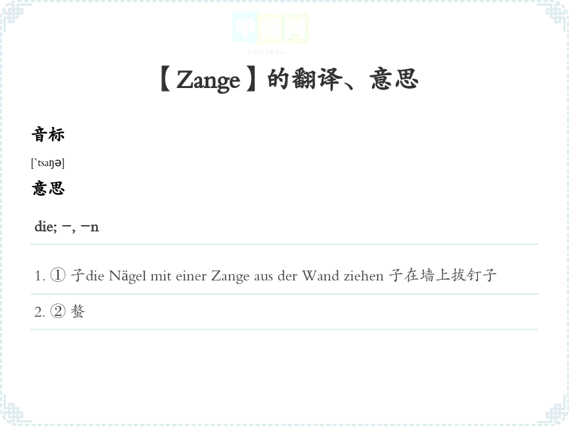【Zange】是什么意思、字义解释