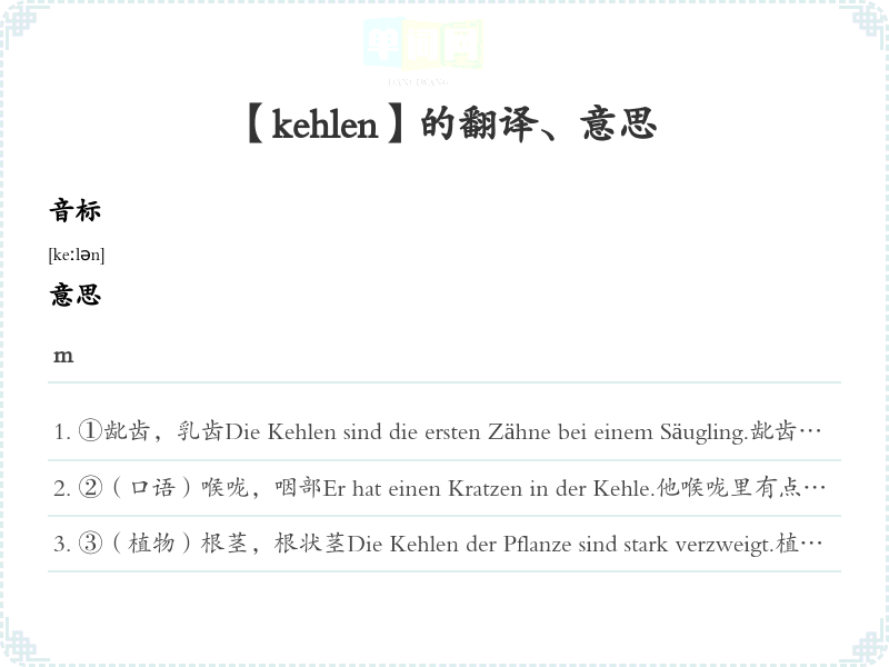【kehlen】是什么意思、字义解释