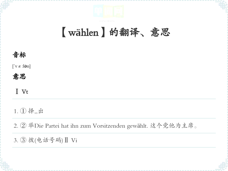 ① 择,,定Haben Sie schon gewählt? 您点餐了吗?