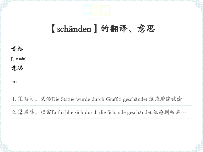 【schänden】是什么意思、字义解释