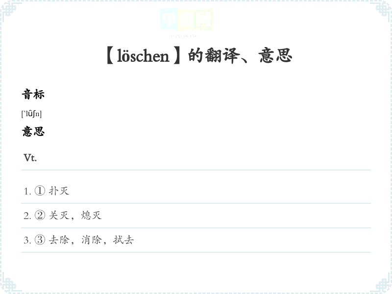 【löschen】是什么意思、字义解释