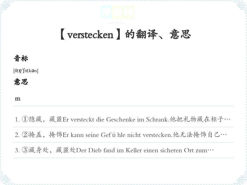 【verstecken】是什么意思、字义解释