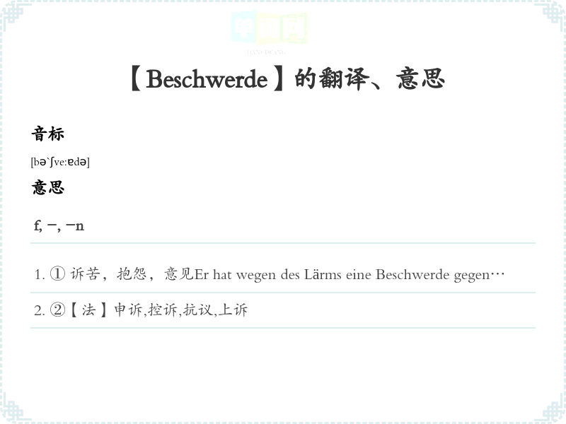 【Beschwerde】是什么意思、字义解释