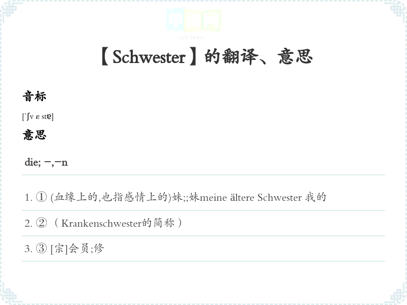【Schwester】是什么意思、字义解释