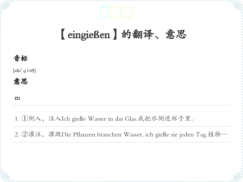 【eingießen】是什么意思、字义解释