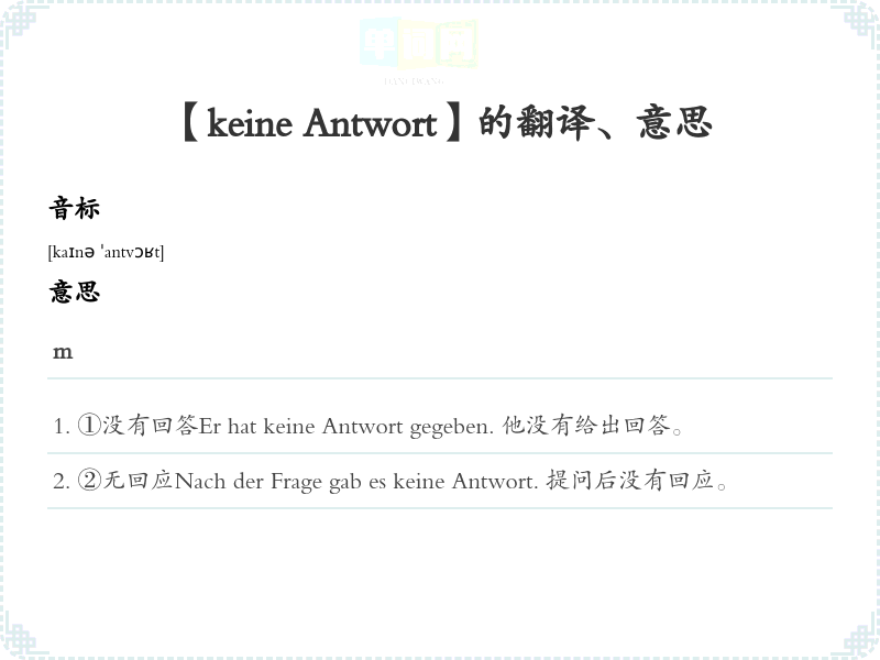 【keine Antwort】是什么意思、字义解释
