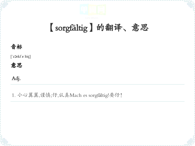 【sorgfältig】是什么意思、字义解释