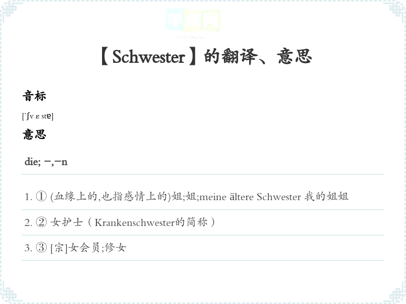 【Schwester】是什么意思、字义解释