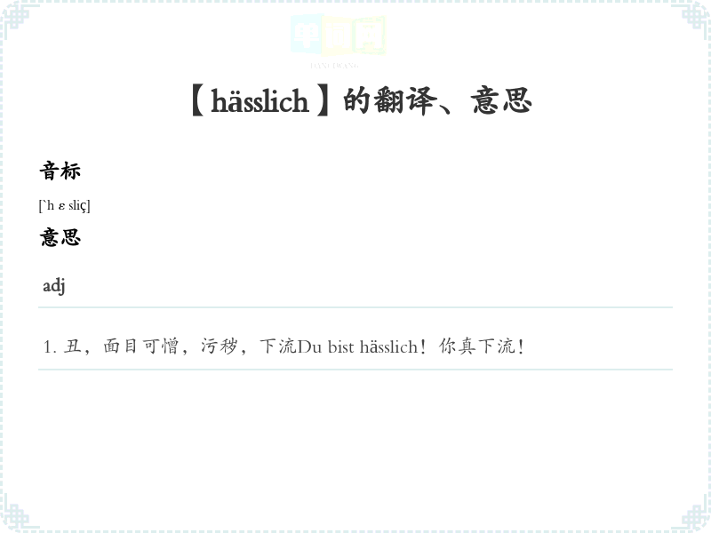 【hässlich】是什么意思、字义解释