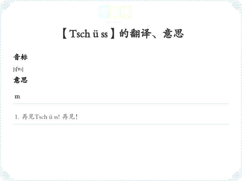 【Tschüss】是什么意思、字义解释