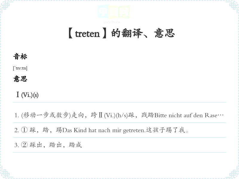【treten】是什么意思、字义解释
