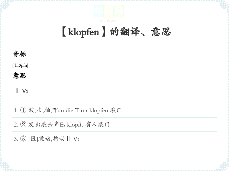 【klopfen】是什么意思、字义解释