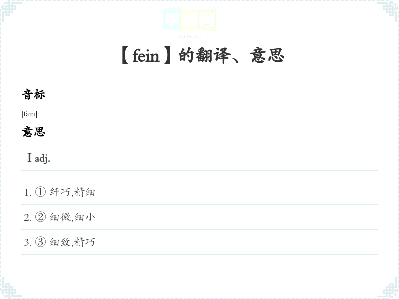⑩ ,尚,文雅Ⅱ Adv.常,很好好地etw.(A) fein säuberlich aufschreiben 把某仔细记下来