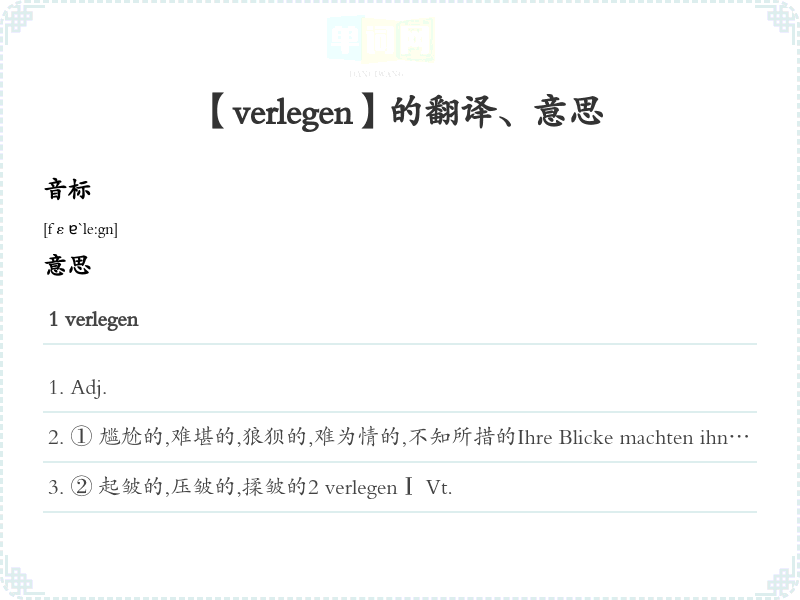 【verlegen】是什么意思、字义解释