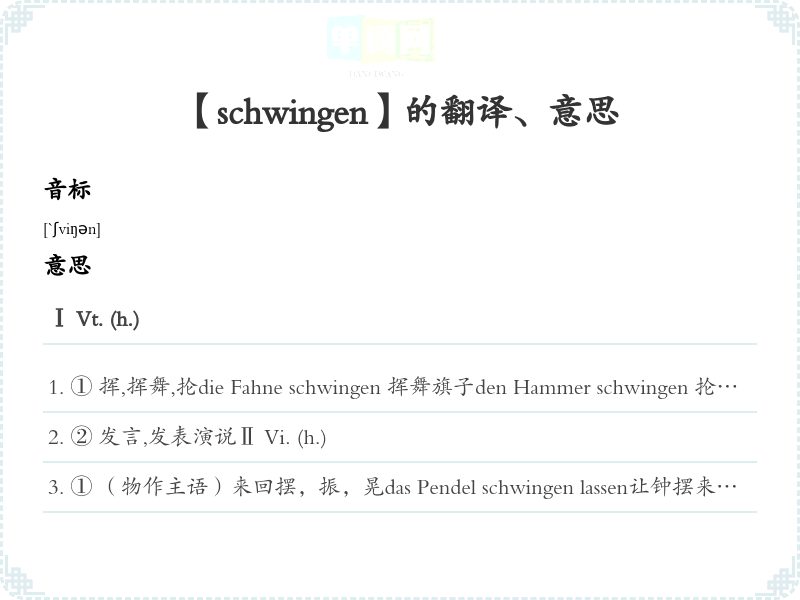 【schwingen】是什么意思、字义解释