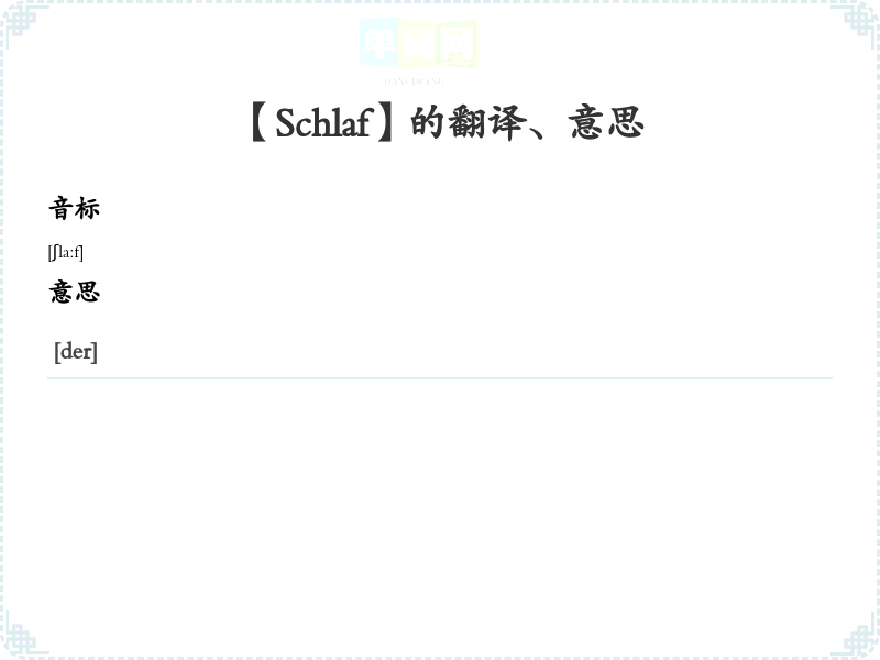 【Schlaf】是什么意思、字义解释