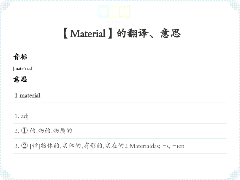 ② [哲]物体的,实体的,有形的,实在的2 Materialdas; -s, -ien