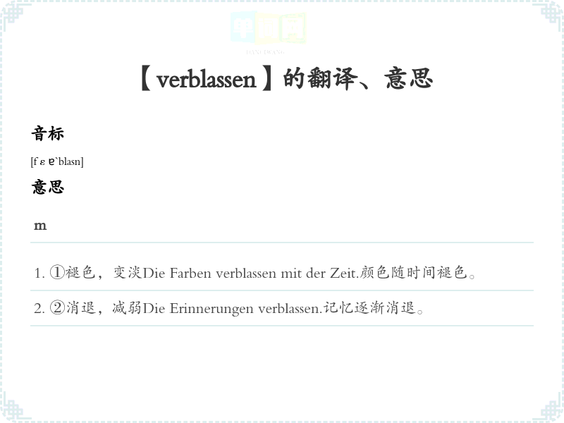 【verblassen】是什么意思、字义解释