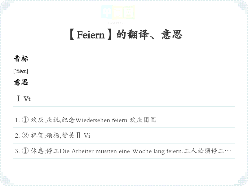 【Feiern】是什么意思、字义解释