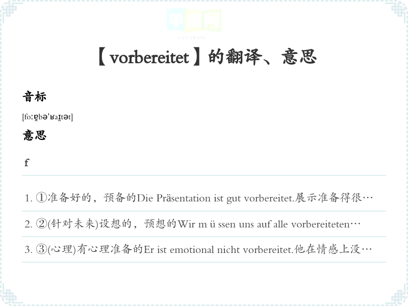【vorbereitet】是什么意思、字义解释