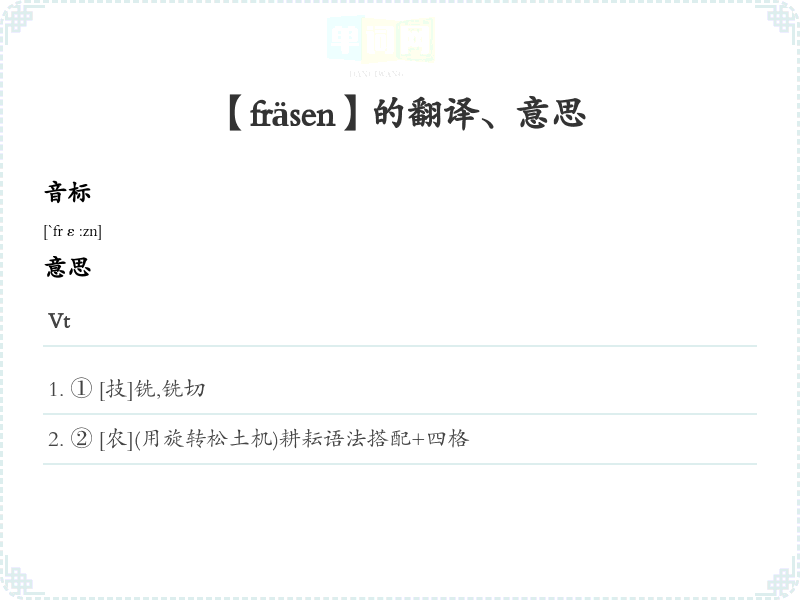【fräsen】是什么意思、字义解释